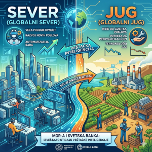 Istraživanje MOR-a i SB, objavljeno kao radni dokument za Izveštaj o svetskom razvoju 2026, daje sveobuhvatnu analizu za 135 zemalja, što čini oko dve trećine globalne (planetarne) zaposlenosti. Studija jasno pokazuje da AI neće uticati na sve delove sveta na isti način – dok će se bogati sever fokusirati na povećanje produktivnosti, globalni jug mora hitno da rešava pitanje digitalne infrastrukture kako ne bi ostao trajno marginalizovan.