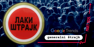 Guglova platforma za praćenje trendova pokazuje da je pretraga „generalni štrajk“ tokom marta bila najveća otkako se ta evidencija vodi. Stoga ne čudi da je i jedno od prepoznatljivijih obeležja demonstranata postao bedž sa natpisom „Laki štrajk“, u stilu logoa brenda cigareta. Na putu do generalnog štrajka stoji trenutni Zakon o štrajku koji Inicjativa Pravo na štrajk želi da promeni.